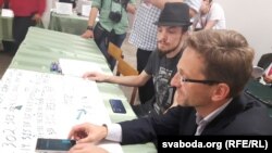 „355!“ — абвяшчае сваю лічбу тых, хто прагаласаваў на ўчастку Алесь Лагвінец і запісвае яе на ватман. — Паводле нашых падлікаў выбары тут не адбыліся. Паглядзім, колькі дамалююць».