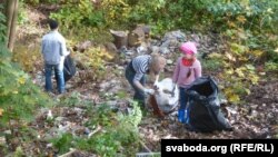 Актывісты і валянтэры грамадзкага аб’яднаньня «Экапраект» наладавалі грузавік сьмецьця, прыбіраючы вытокі невялікай магілёўскай рачулкі Дзебры.