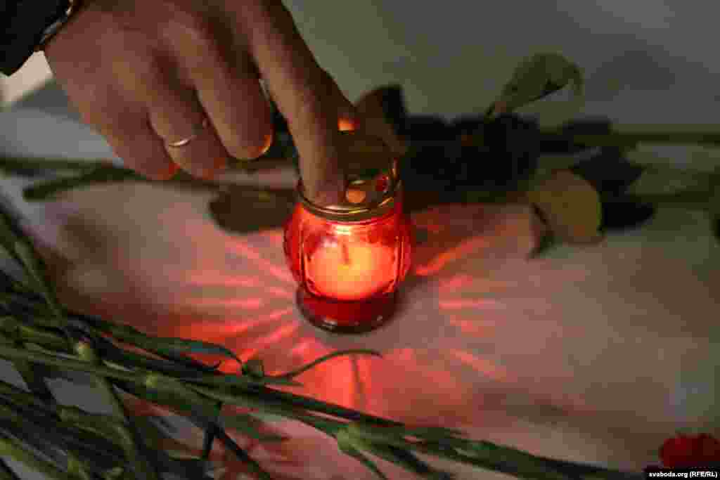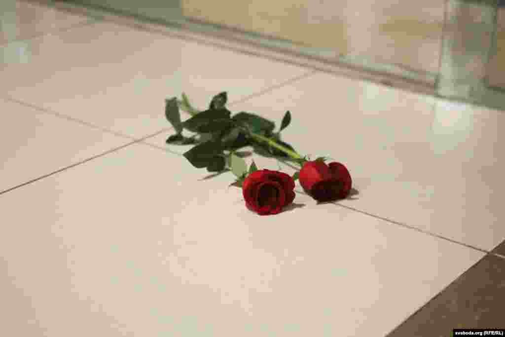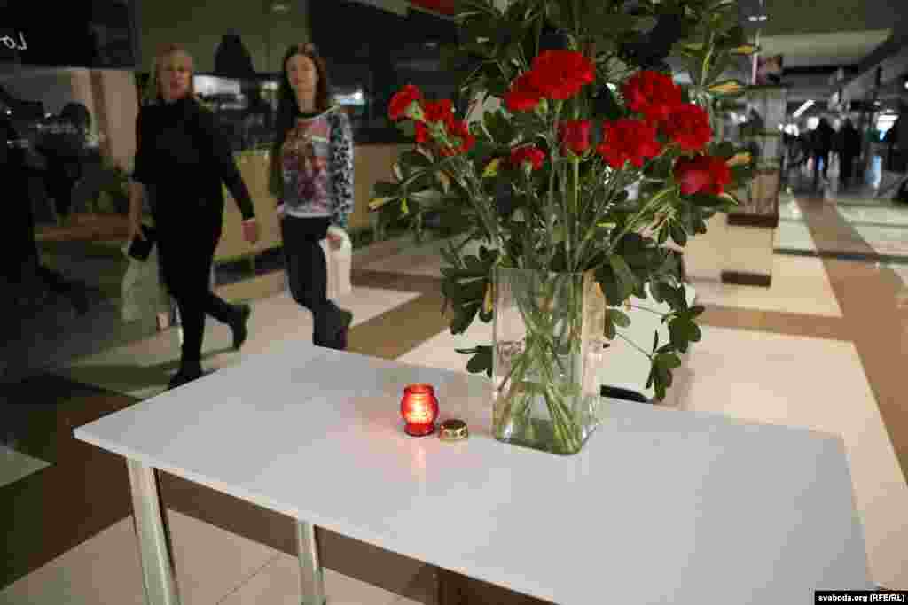 Кветкі на месцы забойства ў ГЦ «Эўропа». ФОТА