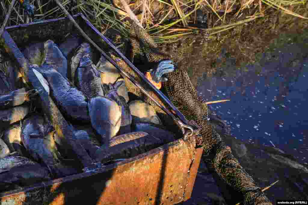 У рыбгасе "Волма" Чэрвеньскага раёна карпаў перавялі на зімоўку. Фотарэпартаж Свабоды.