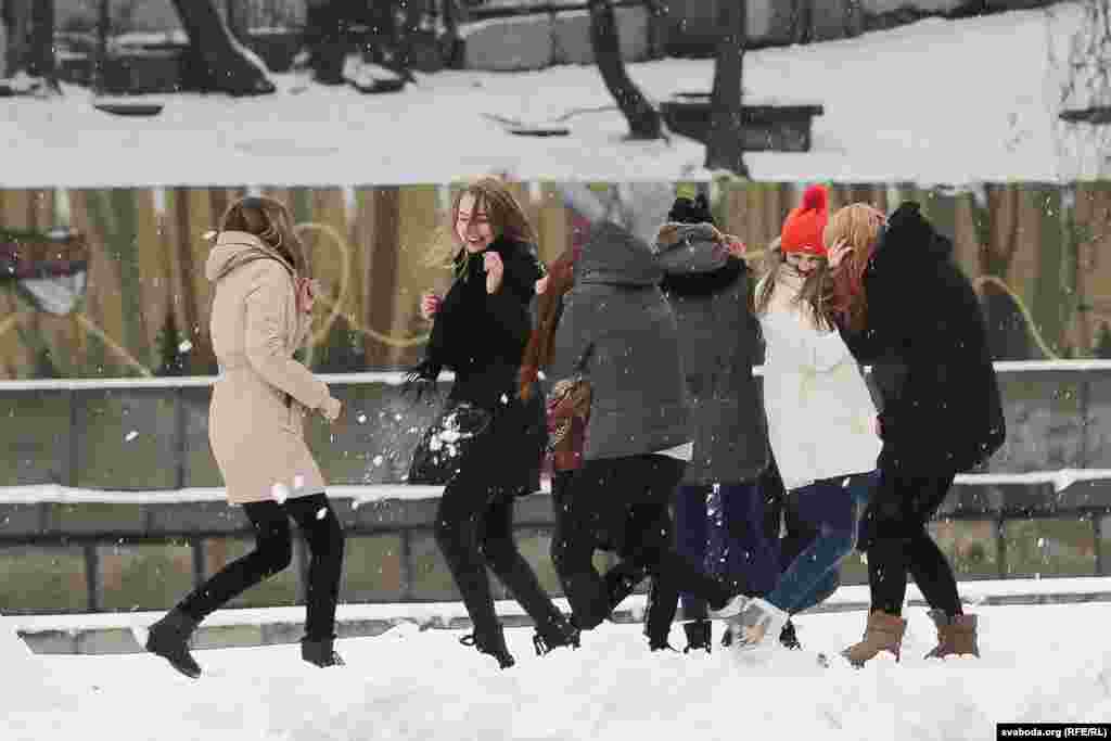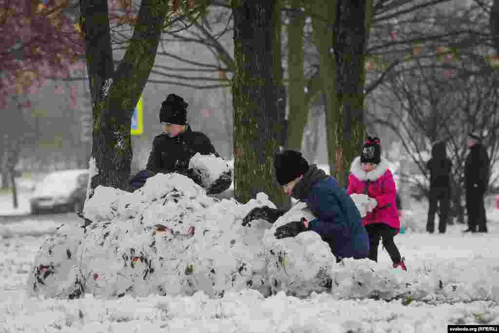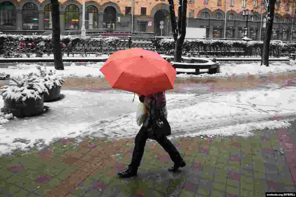 Сьнежны лістапад у Менску. Фота
