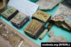 Кельмы, скобы, мантажны пас з канопляў — будаўнічыя прылады, а таксама цыгарэтныя абгорткі, старыя савецкія газэты і іншыя артэфакты сабралі ў «даваенную» частку экспазыцыі. «Лапушка Грыша, 1927», — алоўкам напісана знутры пустой скрынкі ад запалак.