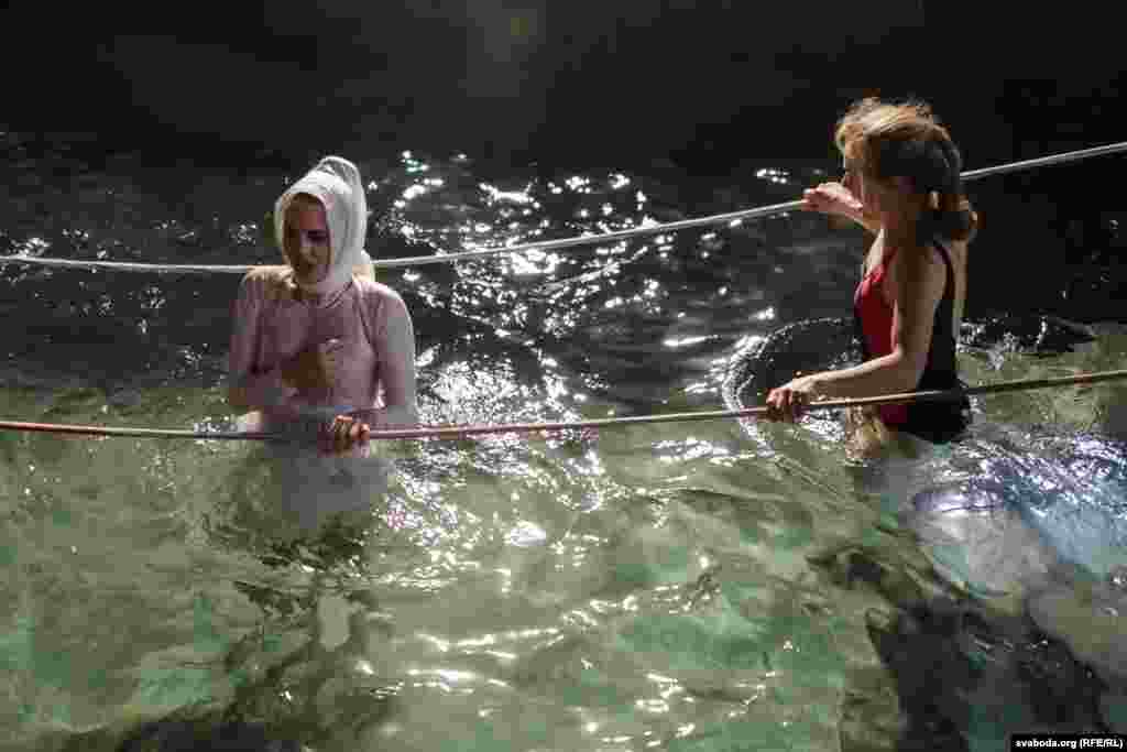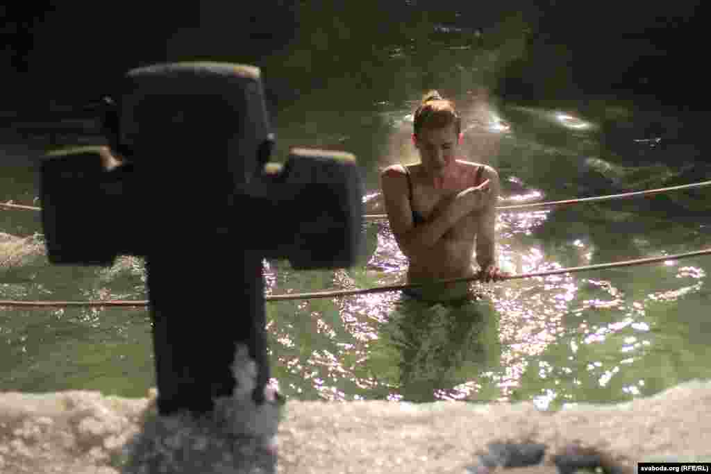 Дзяўчынка бяз страху заходзіць у ледзяную ваду