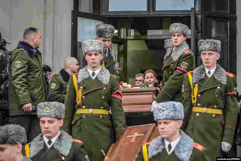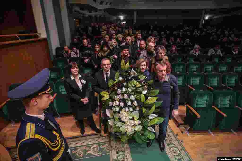 Затым працэсія накіравалася ў Беларускую дзяржаўную філярмонію, дзе да 14-й гадзіны праходзіла грамадзянская паніхіда, якую наведалі сотні людзей.