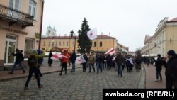 У Горадні некалькі дзясяткаў чалавек прайшлі зь бел-чырвона-белымі сьцягамі па цэнтральнай вуліцы, пратэстуючы супраць дэкрэту № 3.