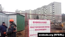 На пытаньне карэспандэнткі Свабоды адзін з рабочых патлумачыў, навошта будуюць дадатковую агароджу: