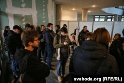 9.50 Прапускаюць чатырох абаронцаў, якія запісаныя ў сьпісе, астатнія застаюцца ў холе. Абаронцу Курапатаў Яна Кравапуска, старшыню Таварыства аховы помнікаў Антона Астаповіча і блогера Антона Матольку таксама не пусьцілі.