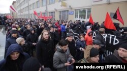 Праваабарончы цэнтар «Вясна» апублікаваў на сваім акаўнце ў Твітэры кадры са спробы затрыманьня анархістаў пасьля акцыі пратэсту ў Менску.