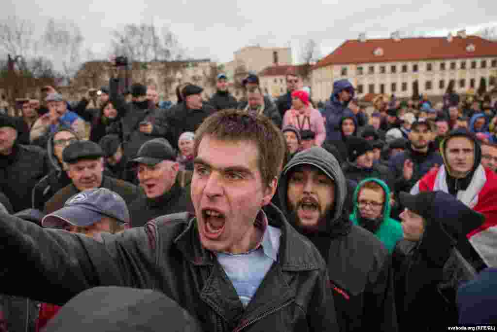 У Горадні на пратэст супраць дэкрэту № 3 выйшлі каля тысячы чалавек. Яна прайшлі з парку Жылібэра да будынку гарадзкой адміністрацыі на плошчы Леніна. На прапанову прадстаўніцы ўлады перайсьці з плошчы ў залю адміністрацыі пратэстоўцы адказалі адмовай.