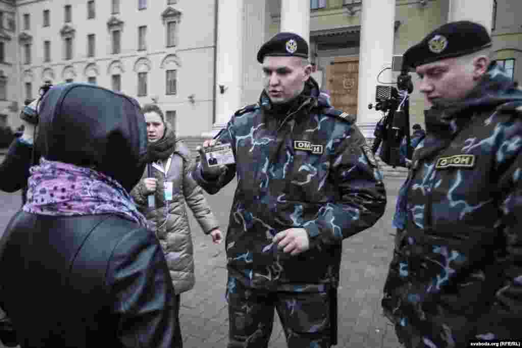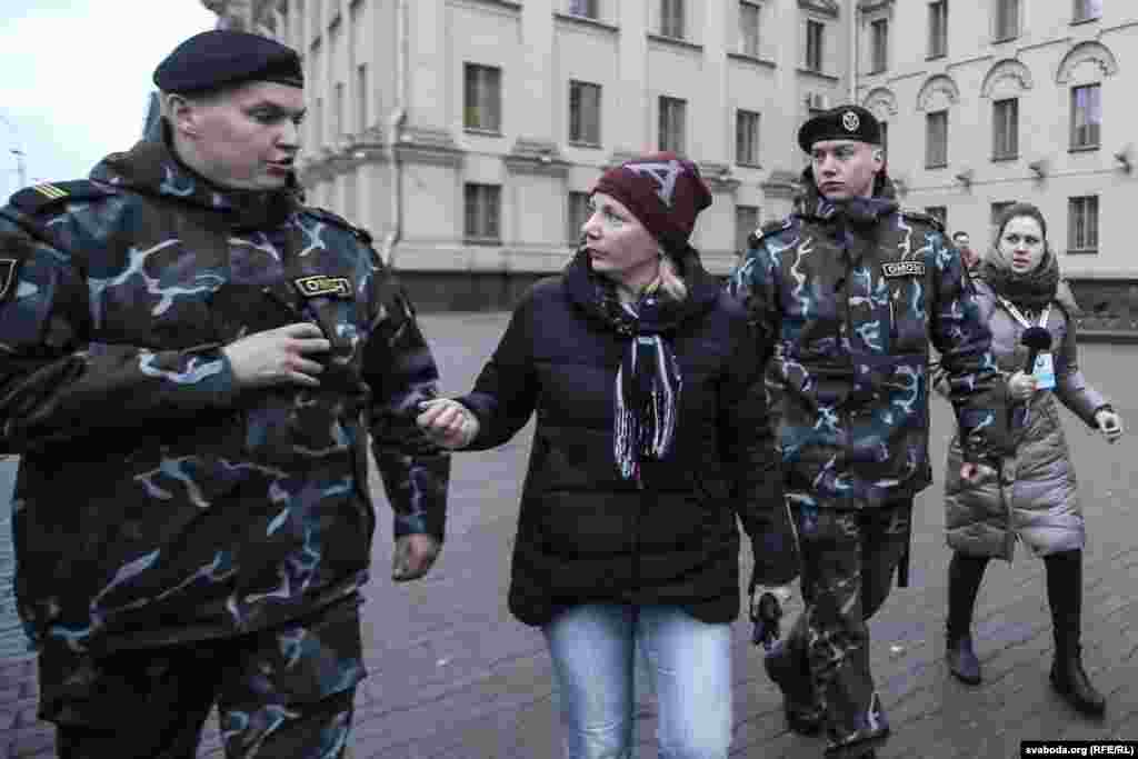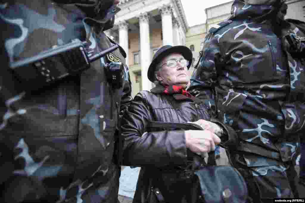 Адразу на пачатку міліцыя затрымала Паўла Севярынца. Яго пасадзілі ў машыну і павезьлі ў пастарунак. Затрымалі і пэнсіянэрку Ніну Багінскую, пісьменьніка Анатоля Кудласевіча.
