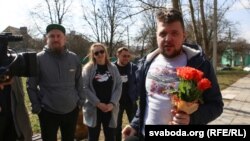 Сябры, аднадумцы, калегі сустрэлі пад турмой на Акрэсьціна дырэктара «Арт-сядзібы» Паўла Белавуса. Ён быў затрыманы на Кастрычніцкай плошчы 26 сакавіка і абвінавачаны ў нецэнзурнай лаянцы. Прысуд — 15 сутак адміністрацыйнага арышту.