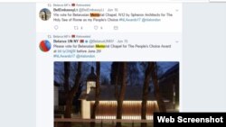 Галасаваньне трывае да 26 чэрвеня. Каб прагаласаваць за беларускую царкву ў «Твітэры», можна перайсьці па спасылцы. Таксама можна галасаваць праз электронную пошту. Па спасылцы трэба ўпісаць сваё імя, адрас пошты, а ў графе «project» — Belarusian Memorial Chapel.