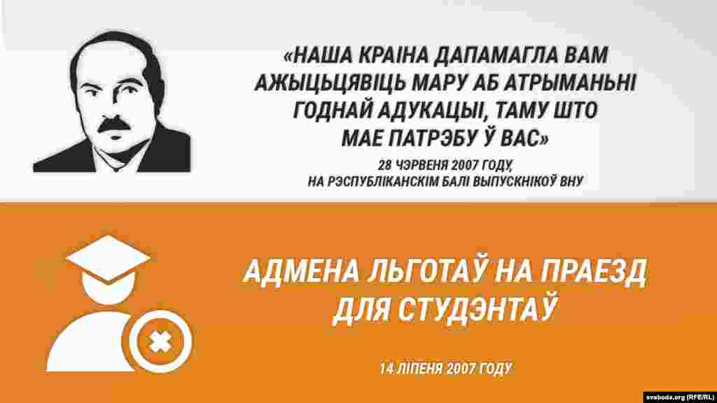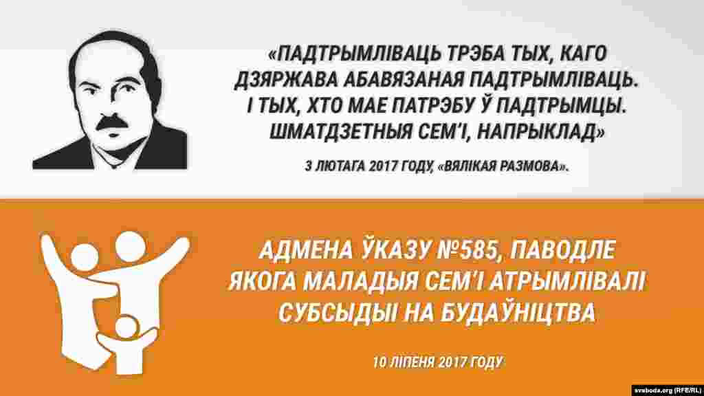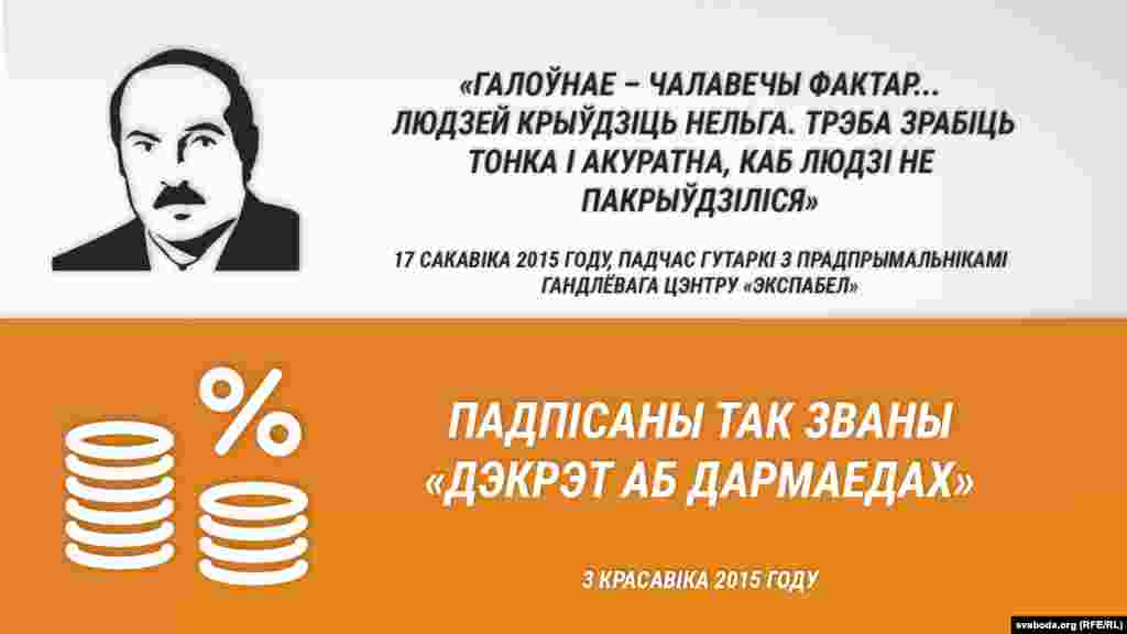 Беларусь — сацыяльная дзяржава, напісана ў Канстытуцыі краіны. Свабода сабрала выказваньні Аляксандра Лукашэнкі, якія па часе прыкладна супалі з увядзеньнем непапулярных зьменаў у сацыяльнай палітыцы.