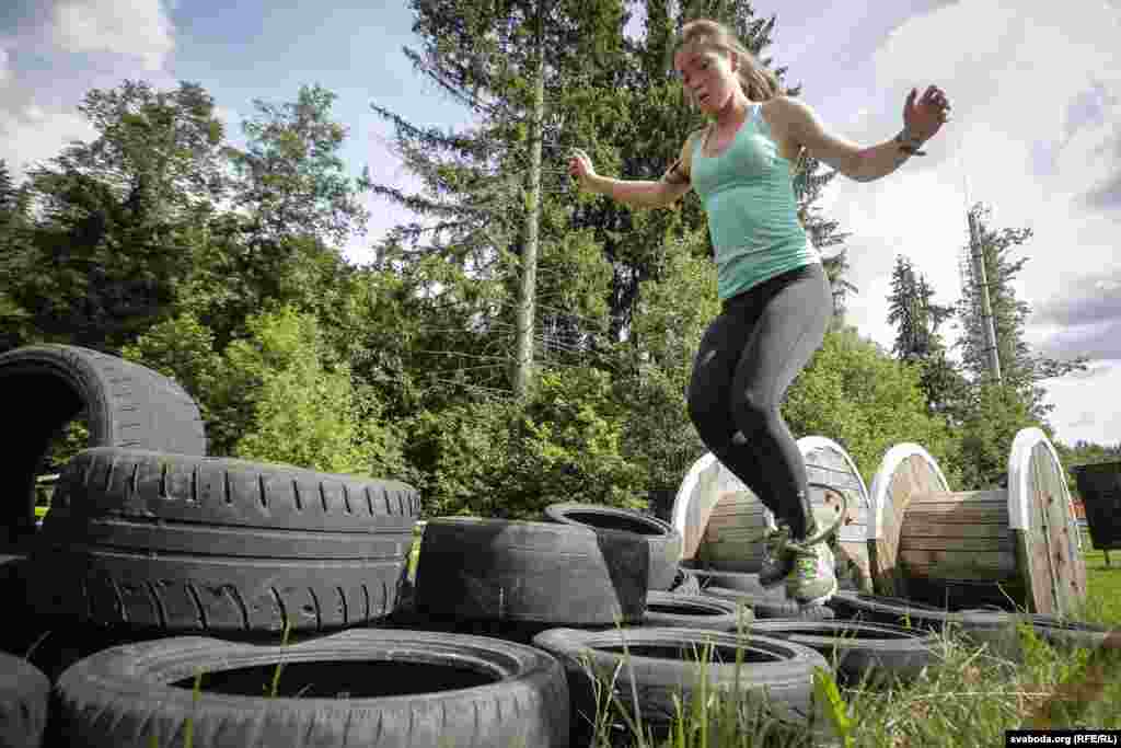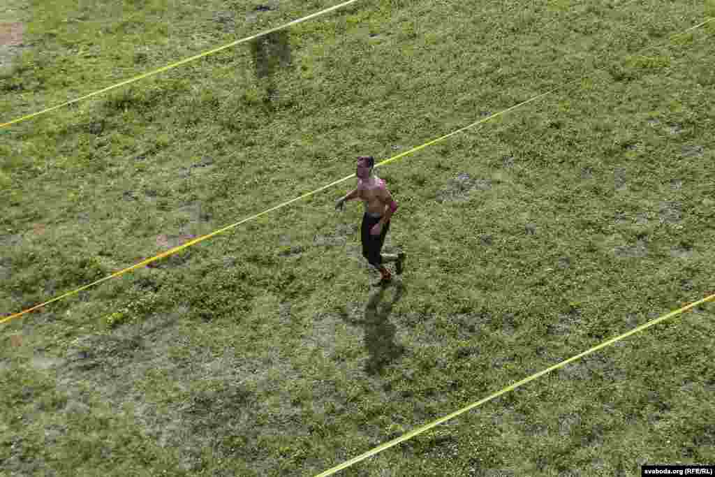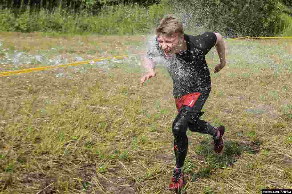Удзельнік па-свойму пераадольвае водную перашкоду.