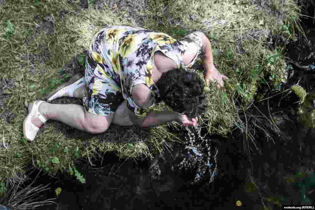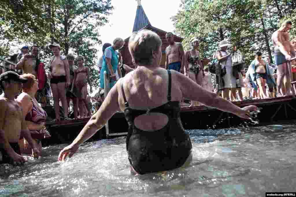 Вада ледзяная, але кожны стараецца тры разы перайсьці цераз крыніцу туды і назад. Іншыя акунаюцца цалкам.