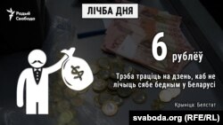 У ліпені бюджэт пражытковага мінімуму ў Беларусі склаў 183 рублі 80 капеек. Гэта на 3 рублі 70 капеек больш, чым у красавіку.