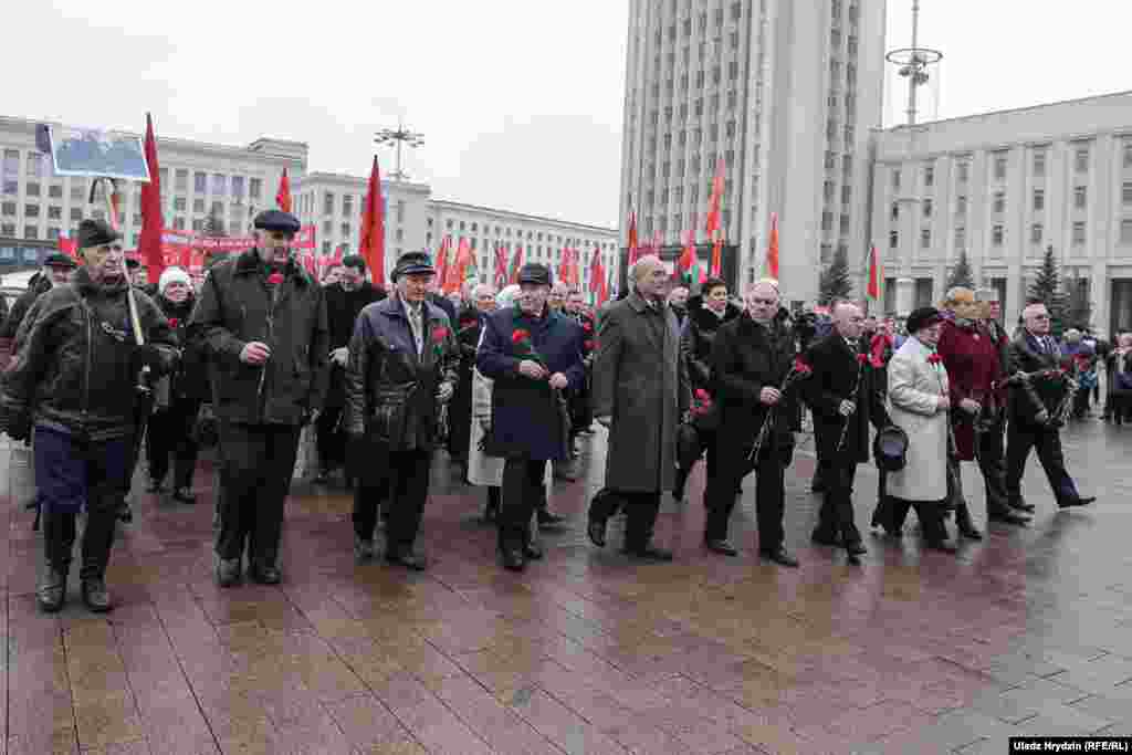 ВІДЭА: З партрэтамі Леніна і Сталіна ў Менску адзначылі 100-годзьдзе бальшавіцкай рэвалюцыі