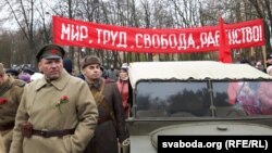Капсулу на вайсковай машыне ў суправаджэньні браневіка даставілі на іншы мітынг, які зладзілі на плошчы Леніна.