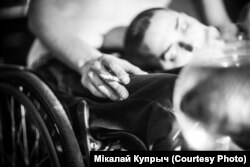 Няёмкія моманты былі: напрыклад, я баялася легчы Віцю на калені. Я важу 50 кіляграмаў — баялася яму нешта паламаць. Часу на тое, каб звыкнуцца, было мала, гэта ж незнаёмае цела — ня так проста, каб атрымалася жывое. Далей мы стараліся фатаграфаваць жывыя моманты, перасоўваньні, любыя прапановы, і проста калі людзі камунікавалі паміж сабой.
