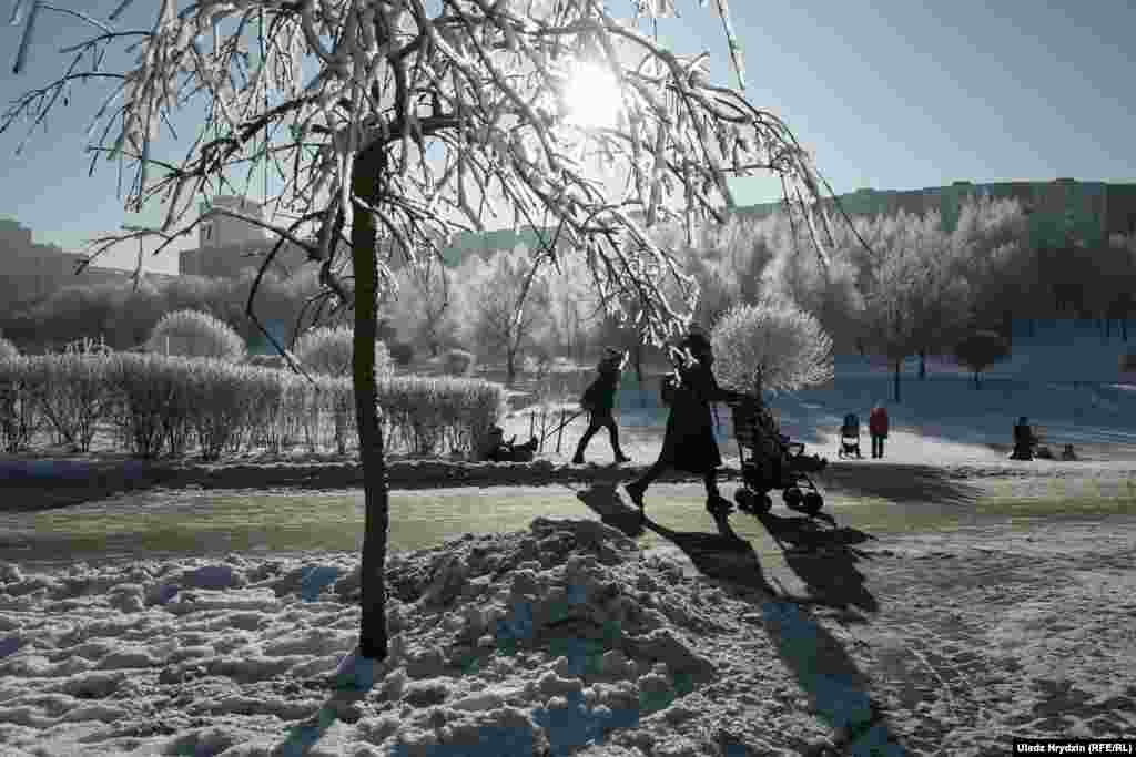 У Менску сёньня па-сапраўднаму зімна. Мароз, сьнег, сонца. Фотарэпартаж Уладзя Грыдзіна.