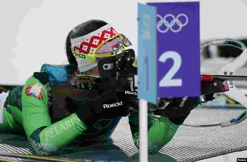 біятляністка Дар'я Домрачава. Яна стала другой у гонцы з масавым стартам.