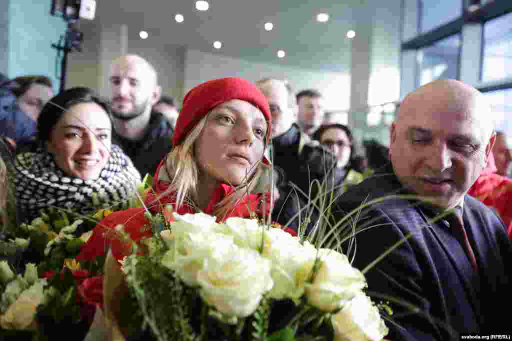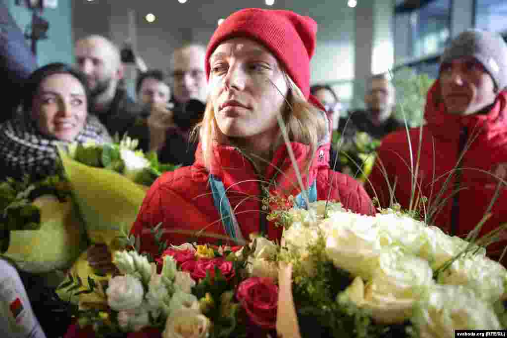 Алімпійская чэмпіёнка ў фрыстайле Ганна Гуськова разам з камандай беларускіх паветраных акрабатаў вярнулася ў Беларусь. Іх урачыста сустрэлі ў Нацыянальным аэрапорце.
