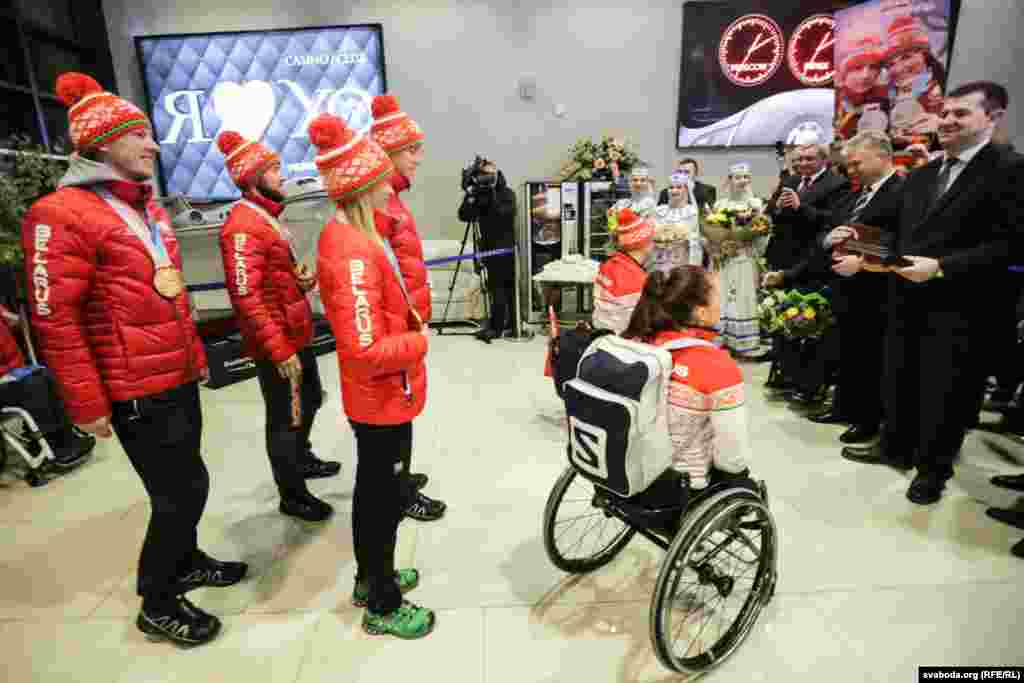 Паралімпійская зборная Беларусі вярнулася з паўднёвакарэйскага Пхёнчхану, дзе з 9 да 18 сакавіка праходзілі XII зімовыя Паралімпійскія гульні. У нацыянальным аэрапорце спартоўцам зладзілі ўрачыстую сустрэчу.