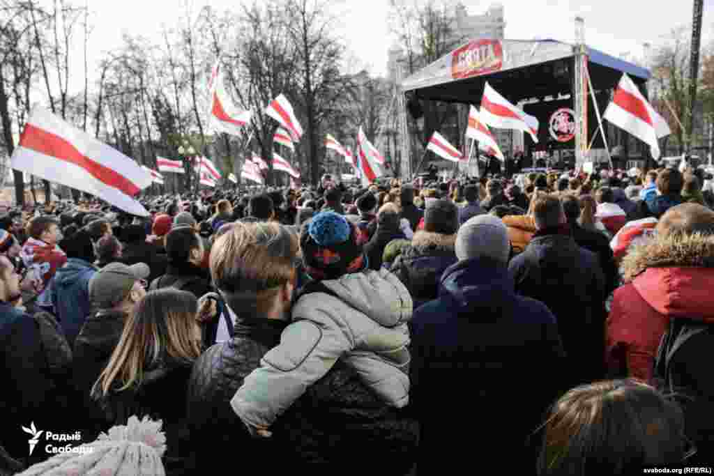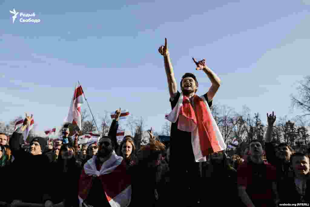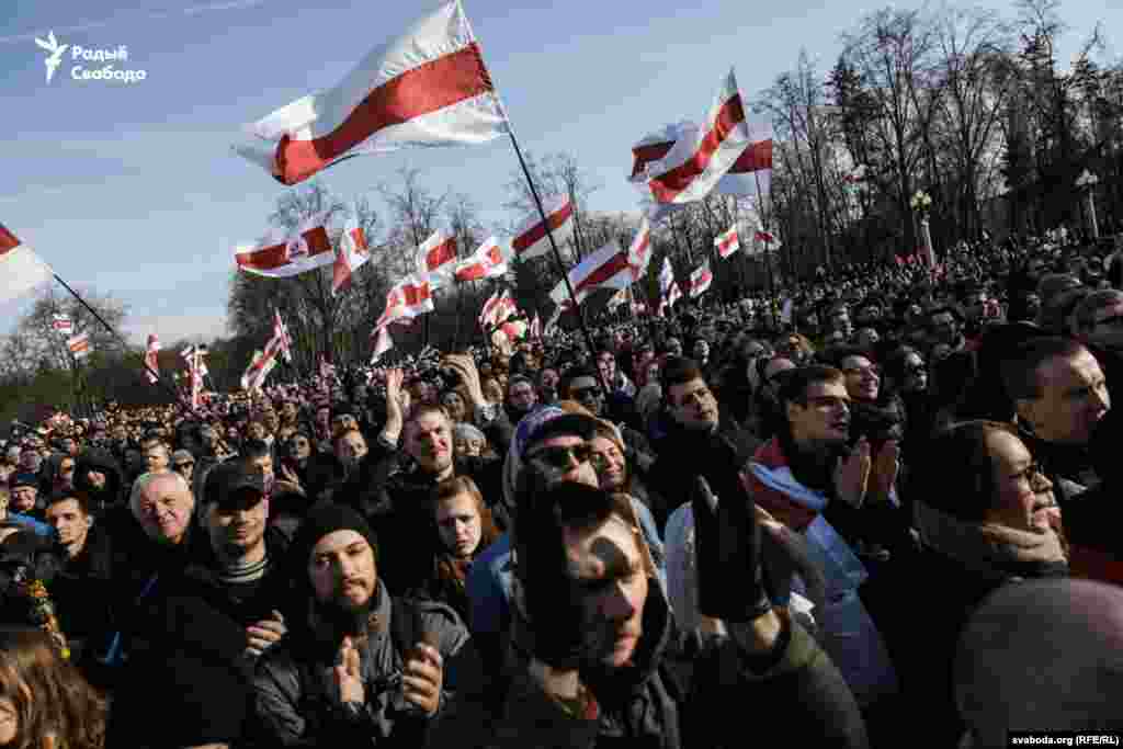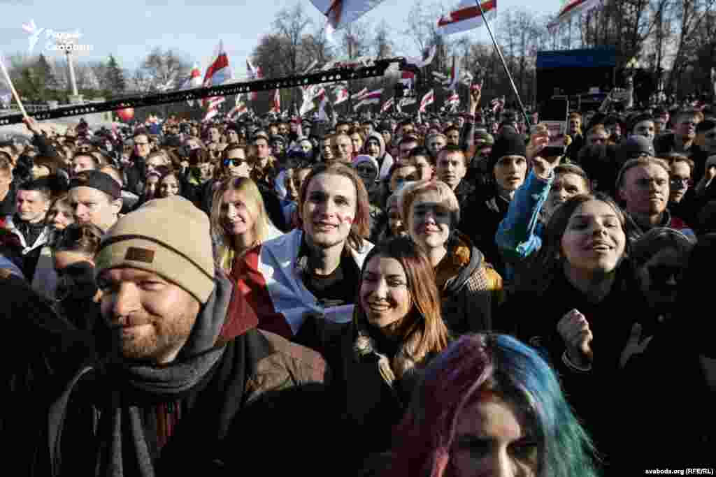 25 сакавіка беларусы адзначаюць 100-ю гадавіну абвяшчэньня незалежнасьці Беларускай Народнай Рэспублікі. Цэнтральная падзея грамадзянскай кампаніі #БНР100 — мітынг-канцэрт «Сьвята Незалежнасьці» ля менскага Опэрнага тэатру, на Траецкай гары, санкцыянаваны ўладамі. Удзельнікі гістарычнай падзеі — у аб'ектывах фотакарэспандэнтаў Свабоды.