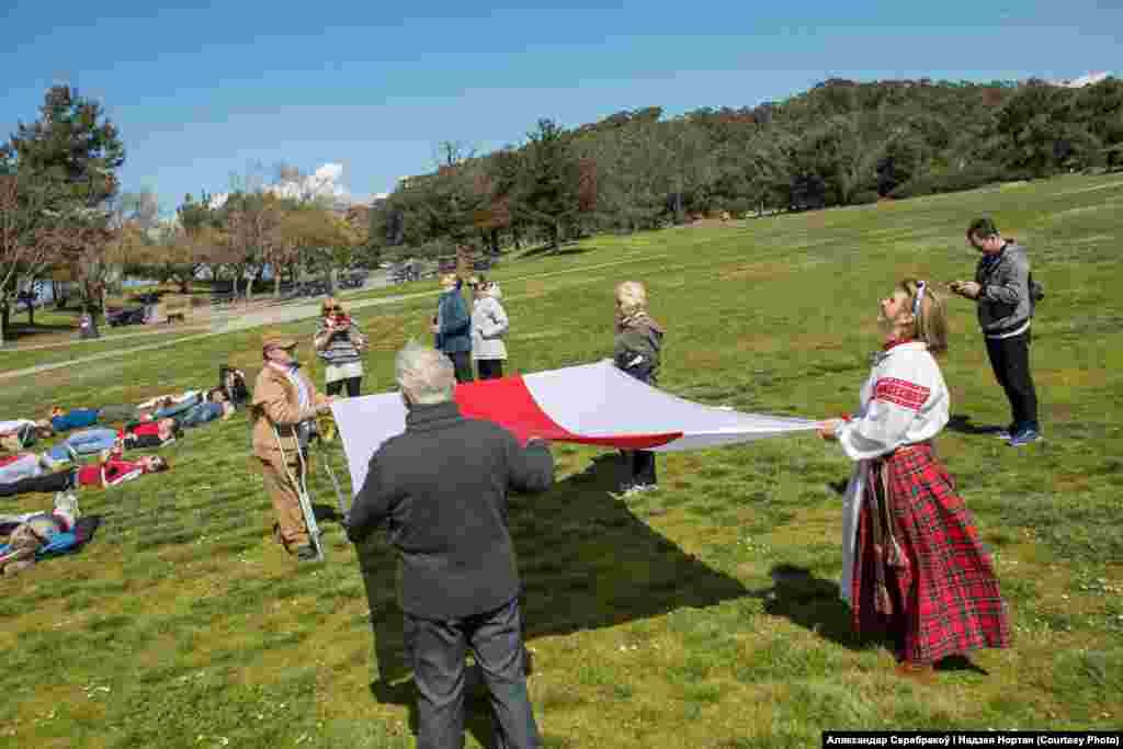 Беларусы ў амэрыканскім штаце Каліфорнія на Дзень Волі зрабілі інсталяцыю — каля 30 чалавек леглі словамі БНР100 і сфатаграфавалі гэта з дрону. Удзельнікі хацелі неяк незвычайна адзначыць 100 гадоў абвяшчэньня незалежнасьці Беларускай Народнай Рэспублікі, кажа ініцыятарка акцыі Надзея Нортан, якая адмыслова сшыла 4-х мэтровы сьцяг для гэтага.