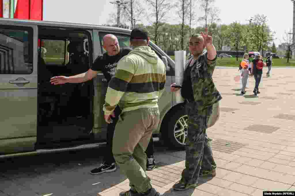 Афіцыйныя прафсаюзы правялі свой мітынг, прысьвечаны 1 мая. У Парку Перамогі сабралося некалькі тысяч чалавек на чале зь Міхаілам Ардой, Ігарам Юркевічам і іншымі чыноўнікамі. Да ўдзельнікаў мітынгу далучыліся прыхільнікі Стакевіча, якія разгарнулі свае плякаты і бел-чырвона- белы сьцяг. Неўзабаве яны былі затрыманыя супрацоўнікамі міліцыі