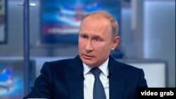 Прэзыдэнт Расеі Ўладзімір Пуцін адмоўна адказаў на пытаньне, ці разглядаюць расейскія ўлады магчымасьць абмену ўкраінскага рэжысёра Алега Сянцова, які галадае ў калёніі, на арыштаванага ва Ўкраіне галоўнага рэдактара агенцтва РИА Новости-Украіна Кірыла Вышынскага.