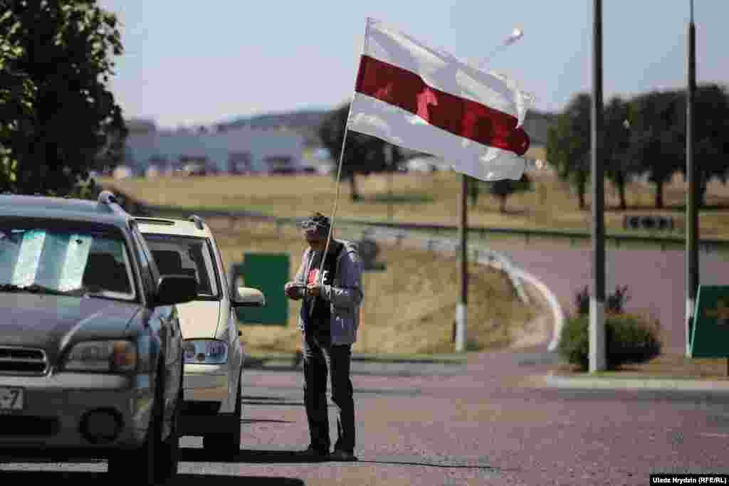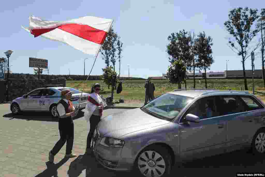 Супрацоўнік ДАІ складае пратакол на Ніну Багінснкую