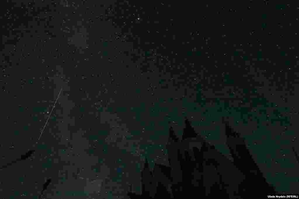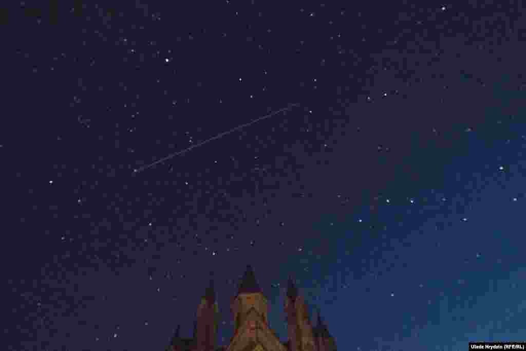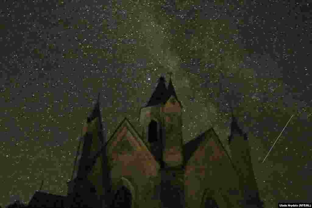 Фотакарэспандэнт Свабоды паназіраў за зарападам (дакладней, мэтэарытным дажджом) і проста прыгожым небам над старадаўнім мястэчкам Багушэвічы на Меншчыне.