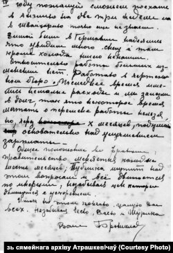 «Дарагі Бацька і ўсе родныя! Як вы пажываеце? Ужо даўно, даўно не было ад Вас лістоў. Ці здаровыя Вы ўсе? Ці няма якой патрэбы, каб я быў у сіле дапамагчы?», — пытаецца Браніслаў.