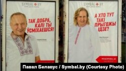 На білбордах Жыгамонт і Някляеў — у беларускіх нацыянальных кашулях.