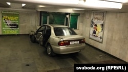 Аўтамабіль Mazda заехаў у падземны пераход ля станцыі мэтро «Акадэмія навук» у Менску.
