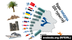 Калі б Беларусь прыняла 100 турыстаў, колькі адкуль было б