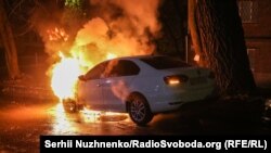 Карэспандэнт Свабода паведаміў пра ахоплены агнём аўтамабіль з дыпляматычнымі нумарамі амбасады Расеі, які стаяў непадалёк ад будынка дыпмісіі, у завулку Яраслава Хомава.