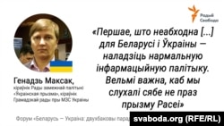 Першае, што неабходна, і гэта можа быць агульны крок для Беларусі і Ўкраіны — наладзіць нармальную інфармацыйную палітыку. Вельмі важна, каб мы слухалі сябе не праз прызму Расеі».