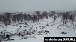 Лесьвіца і коўзанка вядуць на Падмікольскі парк, адно зь месцаў сьвяткаваньня гараджанамі Калядаў. Плямы крыві ля слупа не прыбраныя. За трыццаць мэтраў ад яго шапік з кавай і ласункамі. На вяршыні гары дзяжурыць міліцыянт і не дазваляе коўзацца зь яе. Засьцерагальнай аб’явы няма.