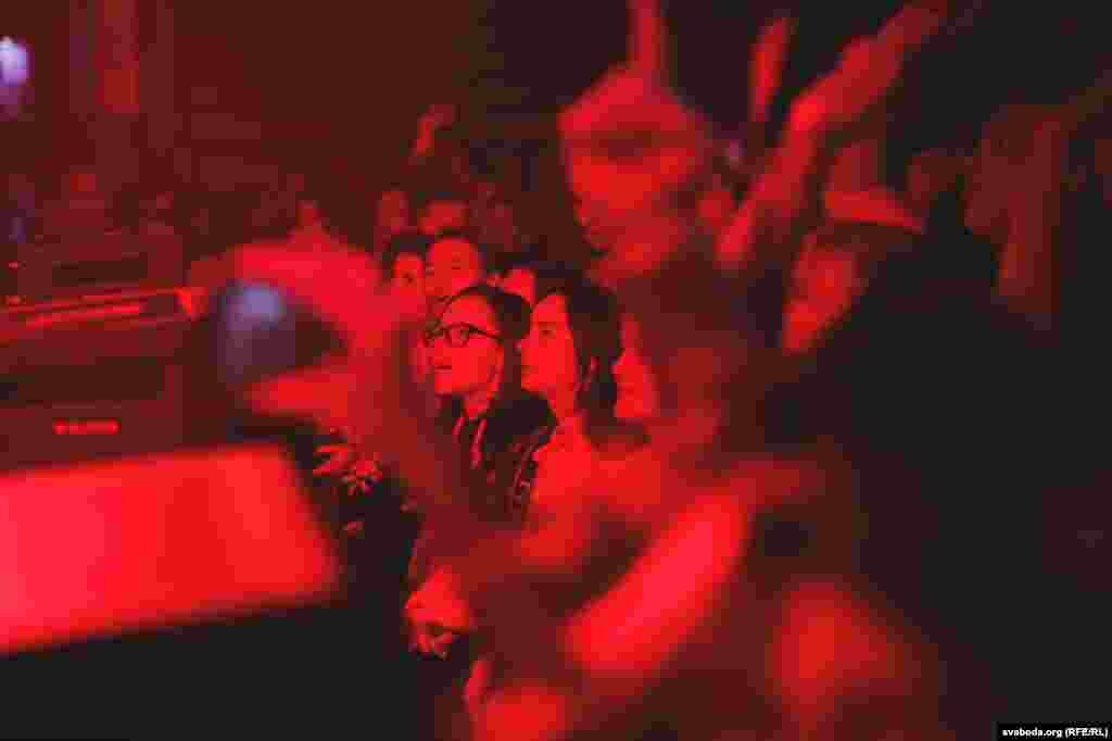 Пасьля некалькіх першых песень у залі зьявіліся бел-чырвона-белыя сьцягі