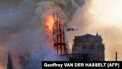 Увечары 15 красавіка ў саборы Парыскай Божай Маці пачаўся моцны пажар. Абрынуўся шпіль будынку.