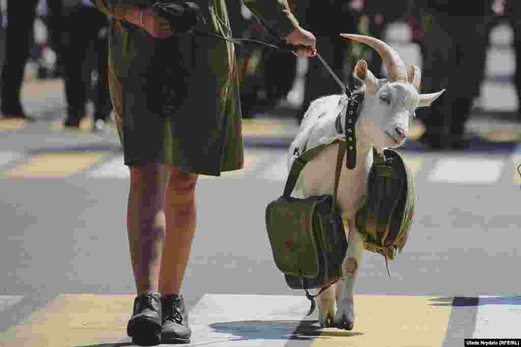 Актывісты БРСМ зладзілі ў Менску рэканструкцыю партызанскага параду, які адбыўся 16 ліпеня 1944 года. Узначаліў парад легендарны казёл па мянушцы Малыш.