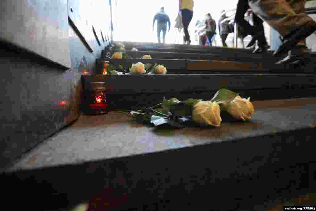 Да мэмарыялу ля станцыі мэтро Няміга прыйшлі сваякі і бацькі загінулых. Яны ўсклалі кветкі, маліліся і ўспаміналі трагедыю.