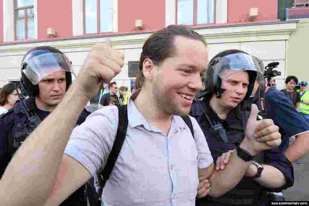 Брутальныя затрыманьні на акцыі пратэсту ў Маскве. Фотагалерэя