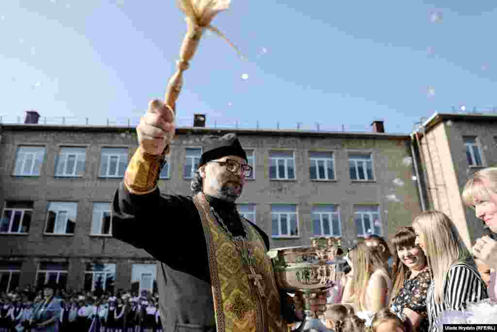 Урачыстая лінейка ў стаўпецкай школе №2, дзе ў лютым 2019 году адбылося двайное забойства, прайшла з удзелам новага дырэктара Аляксея Судніка.