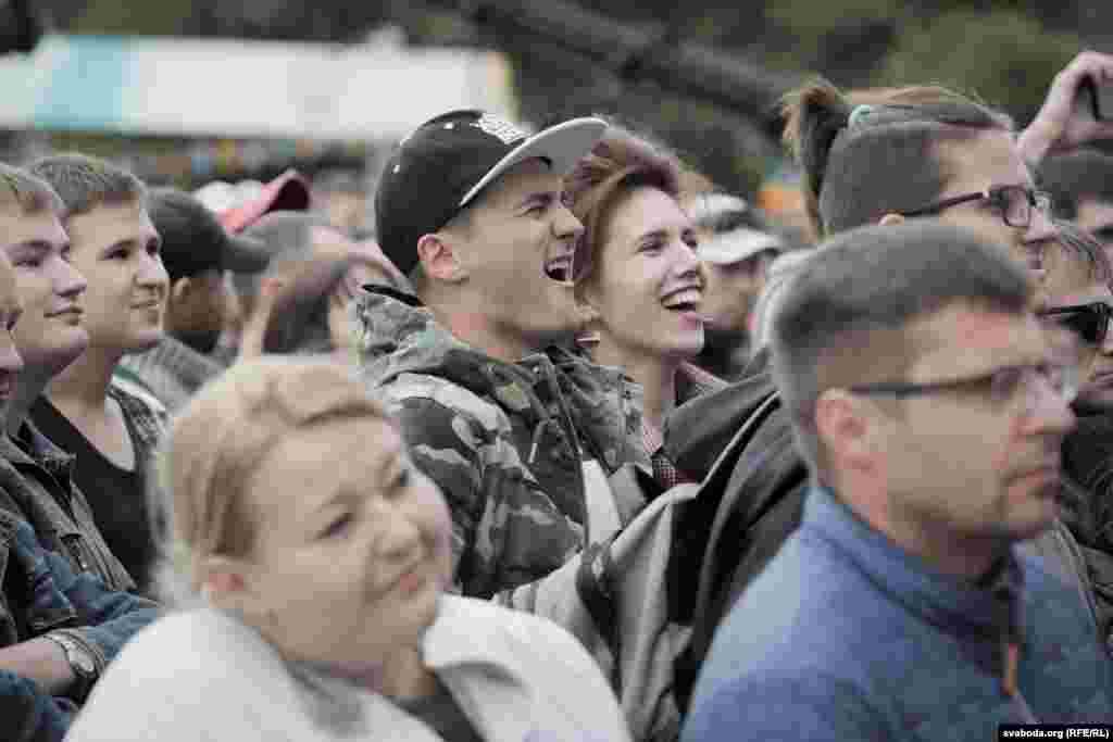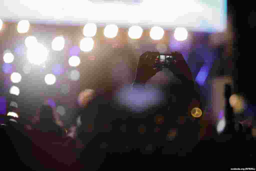 Бел-чырвона-белы сьцяг у натоўпе. У перапынку паміж выступамі супрацоўнікі міліцыі папрасілі яго прыбраць.
