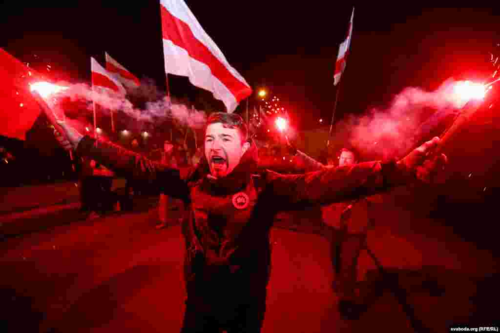 Lithuania - Belarusians marching through Vilnius streets to honour reburied 1863 heroes, 23Nov2019