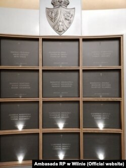 У капліцы на могілках Росы ў Вільні зьявіліся трохмоўныя шыльды зь імёнамі паўстанцаў, якіх урачыста перапахавалі 22 лістапада. Здымкі апублікавала Пасольства Польшчы ў Літве.