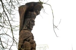 Тады скульптуру прыбралі, бо яна моцна нахілілася і магла ўпасьці на мінакоў. Яе аснова падгніла. Скульптуру высушылі, пачысьцілі, апрацавалі ад шкоднікаў і вярнулі на ранейшае месца. Аднаўленьнем займаўся вядомы горадзенскі скульптар Мікалай Скляр.